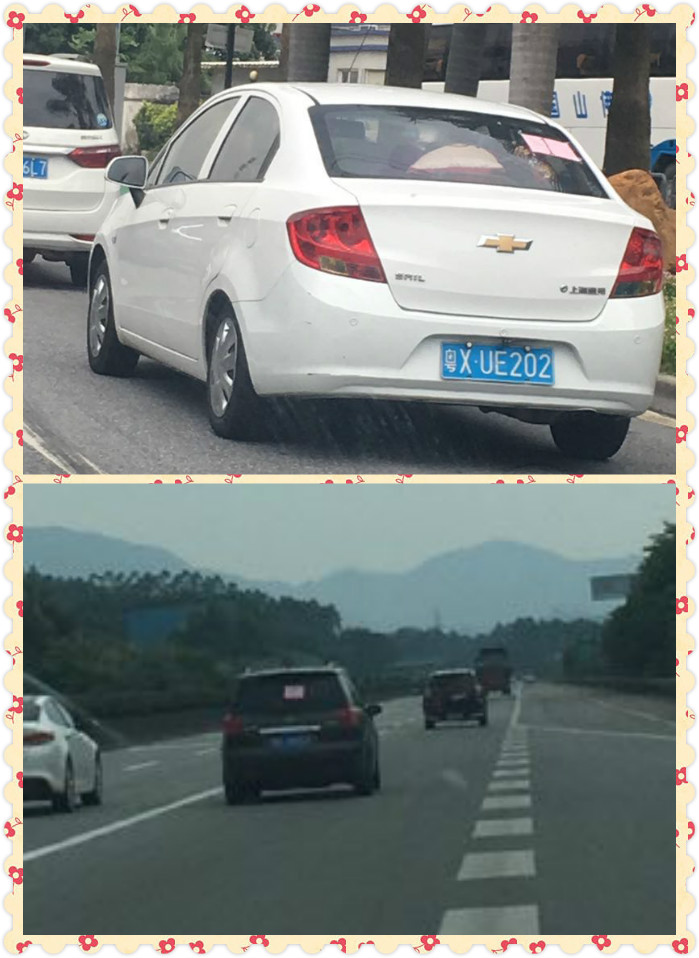8月25日,八點五十分,5臺車就排隊出發了,還貼上我們的標志(嘻嘻,老板臨時手寫的)