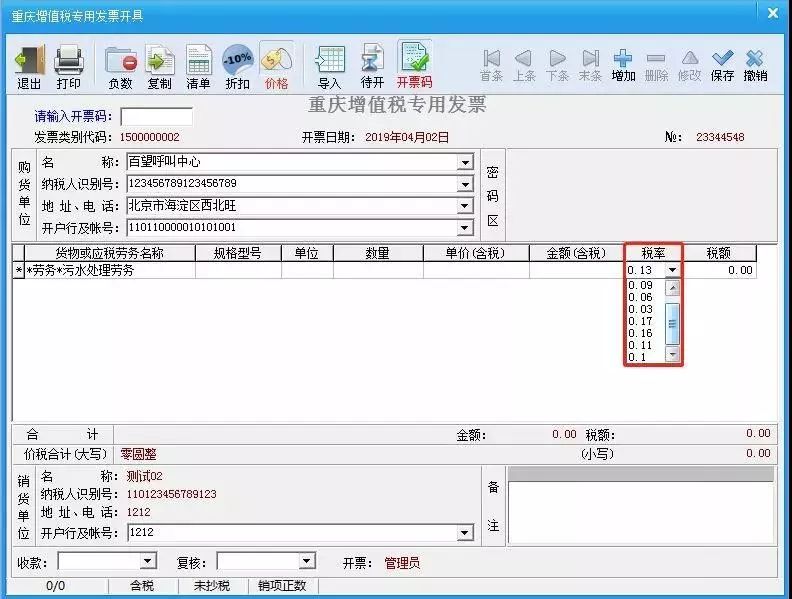 發票填開界面的稅率,新增的稅率排在前面,舊稅率依然存在。