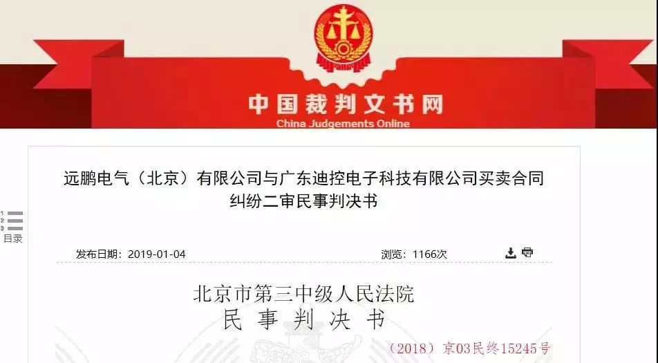 遠鵬電氣(北京)有限公司與廣東迪控電子科技有限公司買賣合同糾紛