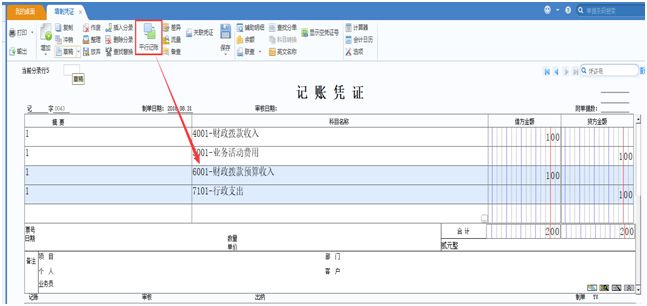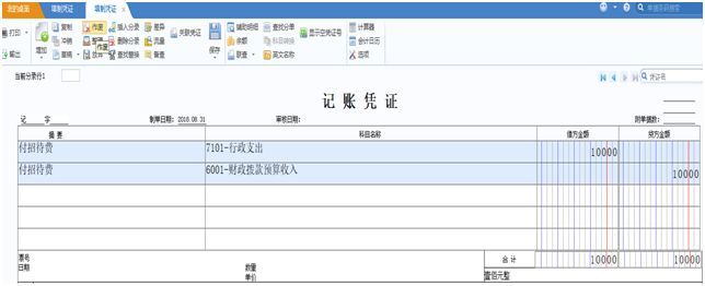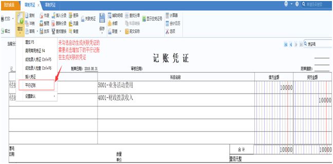 填制財務會計分錄后,點擊“平行記賬“按鈕,在當前憑證中自動生成預算分錄行。